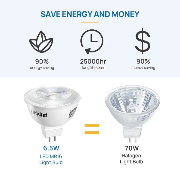 PERFECT ACCENT LIGHTING: With standard GU5.3 base, Linkind MR16 LED dimmable light bulbs emit focused spot light with 40 degree beam angle to better accentuate the items. Ideal for track lighting, landscape lighting, recessed lighting and spotlight in the house, office, gallery, museum, store, restaurant etc.